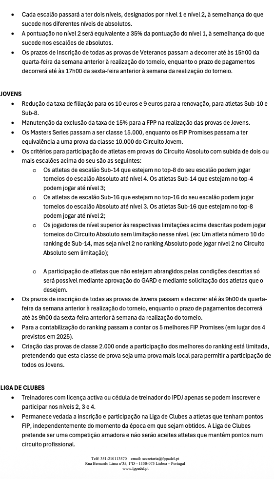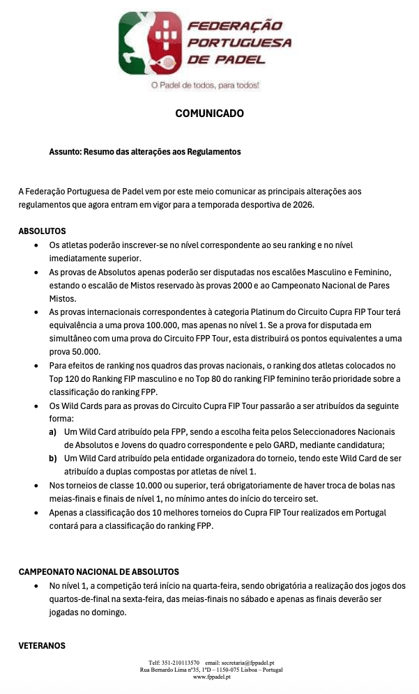 Comunicado – Resumo das alterações aos Regulamentos